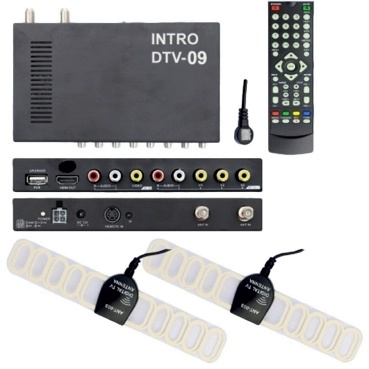 Автомобильный универсальный цифровой ТВ-тюнер Intro DTV-09 ЂЂЂ полностью русифицированное устройство для приёма и воспроизведения цифрового ТВ и радио, созданное для эксплуатации в России и Европе. Легко устанавливается в любом месте салона и подключается к любому головному устройству, имеющему цифровой аудио-видеовход. Оборудовано входами и выходами для работы с флэш-памятью, имеет три видео-выхода с возможностью подключения нескольких мониторов, цифровой выход HDMI (видео звук), комплектуется двумя активными антеннами, пультом ДУ с выносным ИК-приёмником. Устройство отличается прекрасными эксплутационными качествами и революционно низкой ценой, по сравнению с аналогичными предложениями на рынке автомобильной электроники.